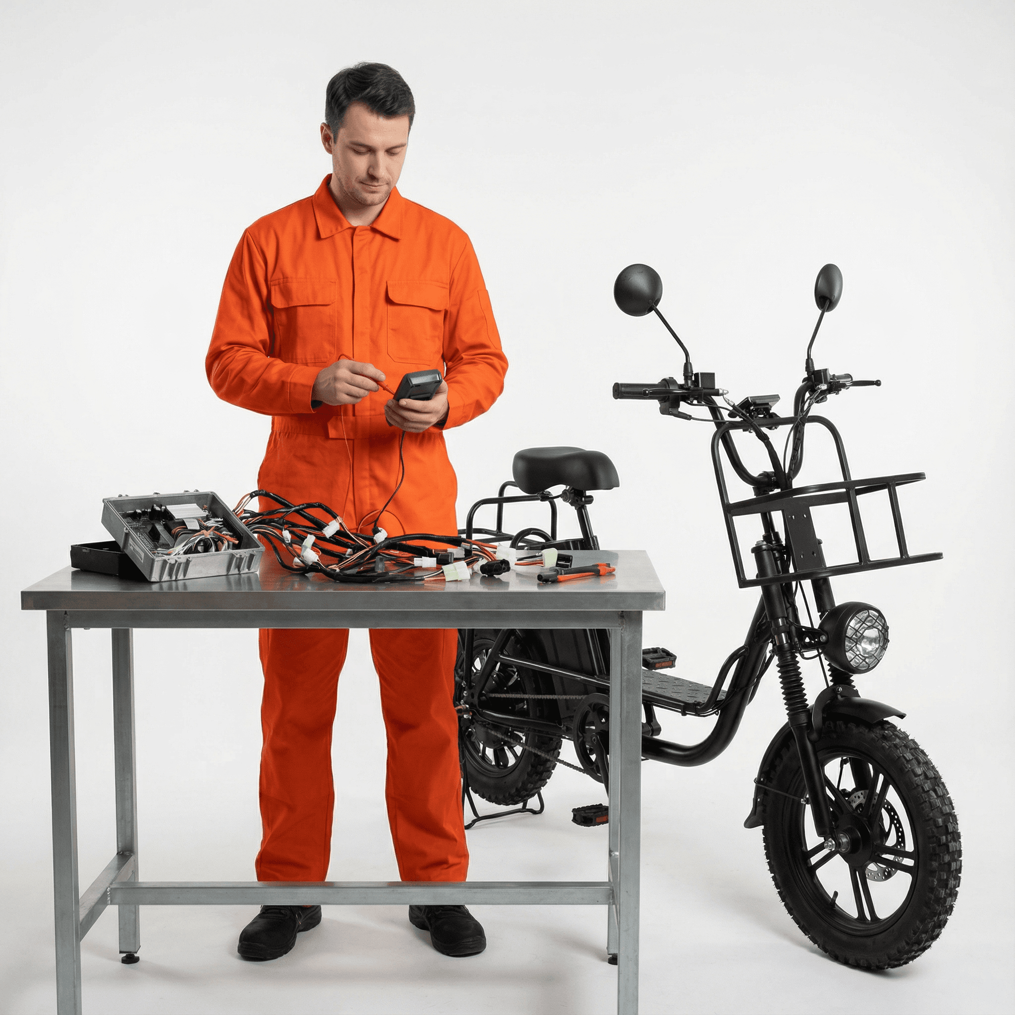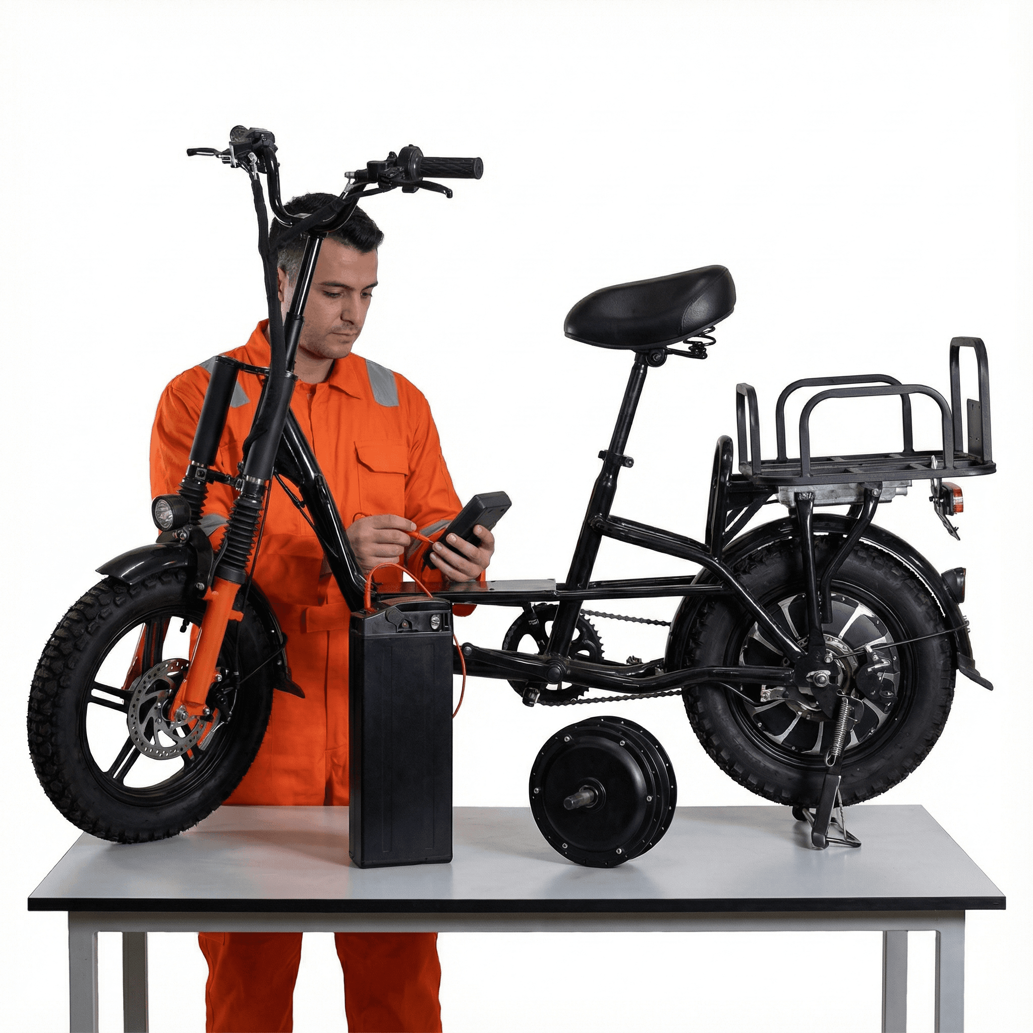 Проверка ёмкости, просадок под нагрузкой, работы BMS, температуры, переднего и заднего моторов. Помогаем оценить оставшийся ресурс.